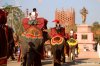 - ขบวนขันหมากบนหลังช้าง ช้างหลายเชือกถูกตกแต่งด้วยผ้าสีสวยงาม เครื่องประดับวิจิตร พร้อมเจ้าบ่าวและขบวนแห่เดินทางไปบ้านเจ้าสาว ท่ามกลางเสียงกลองยาวและดนตรีพื้นบ้านที่สนุกสนาน